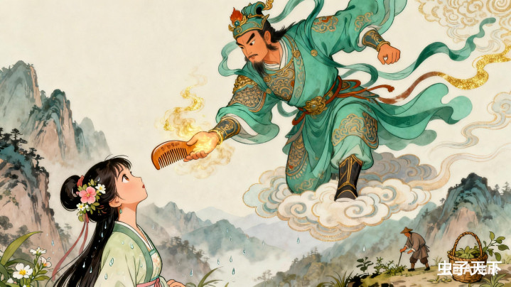 可那阿绣被逼到墙角,竟从怀里掏出一把桃木梳,对着恶霸唱起歌来:“西山日头落,东岭眉月弯,你家灶王爷,昨夜翻了碗……”