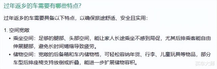 在《买车大师》看来,春节返乡最紧要的如故平祯祥安、顺奏凯利到家。因此,车辆的永久沉稳性和安全性能,才是返乡用车最需要具备的教导。