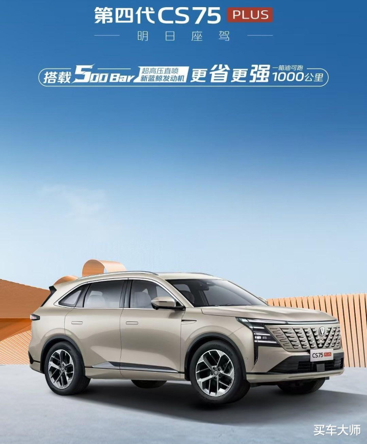 第四代CS75PLUS澈底冲破了以往级别的尺寸鸿沟,堪比中型SUV,车长来到4770mm,轴距来到2800mm,比不少日系中型SUV都要更胜一筹,要津是宽度来到1910mm,远胜一众燃油紧凑型SUV。